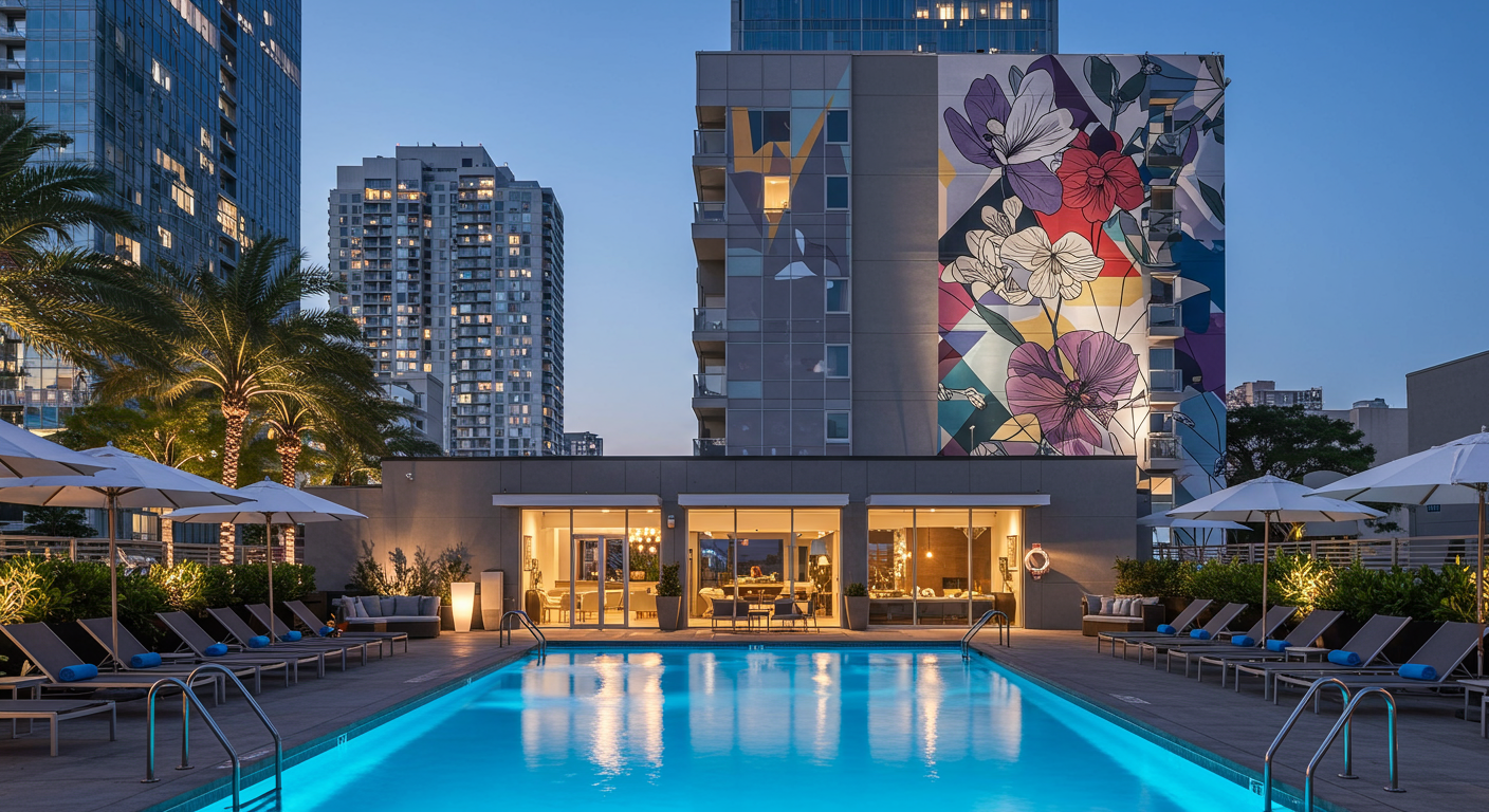 When it comes to iconic SoCal pools, you can’t beat Hollywood Roosevelt, which is adorned with a groovy David Hockney mural. Try cocktails from the custom lineup, which includes a spicy G+T and a mango colada, and order eats off their extensive menu, with plenty of small bites like vegan potstickers and a Shrimp Tostada. Earlier this summer the property launched a calendar of summer experiences, including daytime DJs at the pool Friday through Sunday afternoons and Friday nights, plus Tuesday movie nights, with attire to match the movie encouraged. The hotel also set up a bohemian-style, open-air massage garden where you indulge in an outdoor treatment until 9 pm.