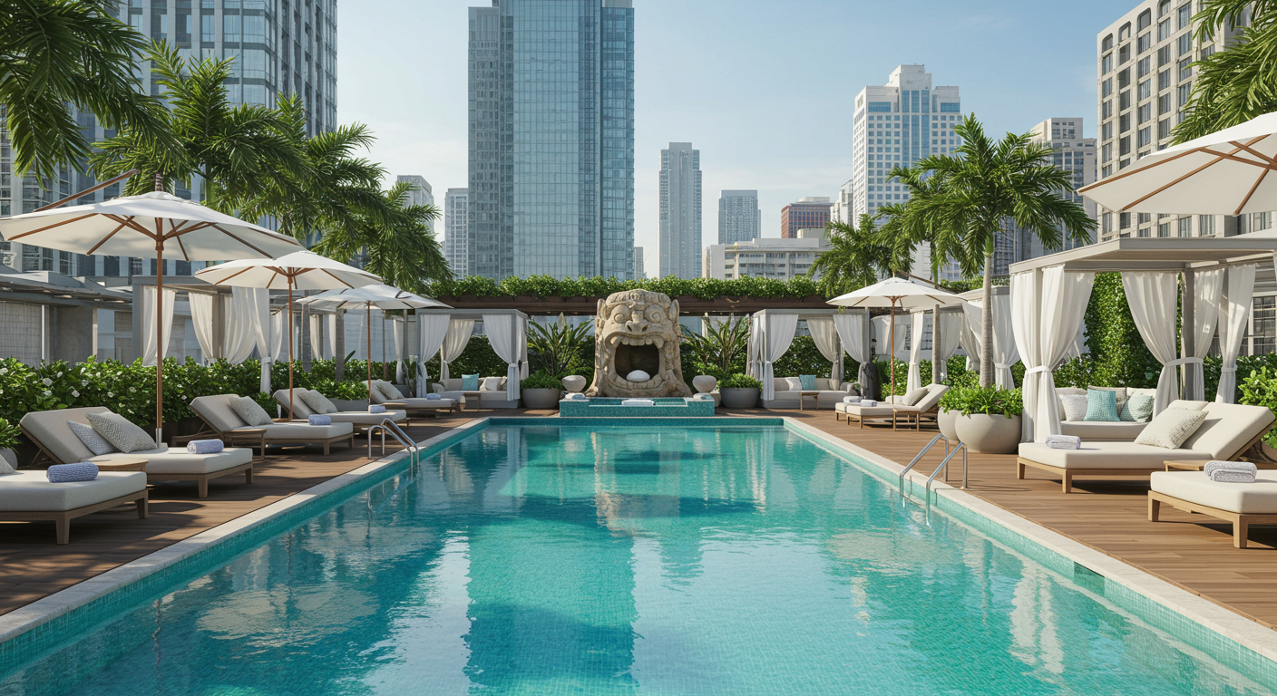 This ultra-posh hotel’s teak poolside deck—dubbed the “Mr. C Yacht Club,” is a perfect place to grab a cool cocktail and bite before settling into one of the cushy couches, umbrella-covered tables, or fun-sized bar. If you want to make a day of it, you can buy a day pass to the pool, reserve a daybed, or rent a private shaded cabana that comes with seating for six, a flat-screen TV, two lounge chairs, and chilled waters and towels. And through the end of September, Mr. C is putting the funday in Sunday with rotating DJs playing at the pool from 12pm to 5pm.