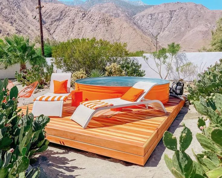 Celebrate the allure of the desert terrain with a hot tub deck influenced by Southwestern charm. Embrace a palette of warm earthy hues such as terracotta, sand, and turquoise for both the deck flooring and furnishings, evoking the spirit of the Southwest. Integrate succulents and cacti into the landscape design, lending a touch of desert authenticity. Complete the ambiance with a fire pit, inviting cozy evenings beneath the celestial canopy of star.