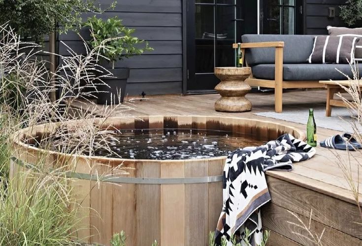 Transform your backyard into a luxurious retreat with a stylish sunken hot tub deck. Nestled seamlessly into the landscape, this sleek design boasts modern elegance and invites you to unwind in absolute comfort. Surrounded by lush greenery and chic furnishings, it's the ultimate oasis for relaxation and rejuvenation.