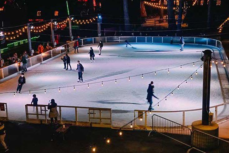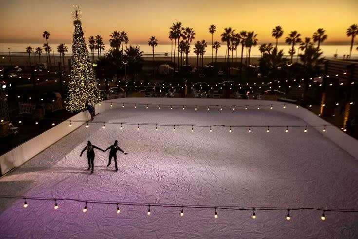 Skate right on the beach—or, at least, a few lanes away from the sand. Huntington Beach’s Paséa Hotel & Spa turns its event lawn into an outdoor rink with 90-minute-long sessions, plus hotel-caliber amenities (think rentable fire pits and a sweet and savory menu). Look out for themed nights throughout its run.