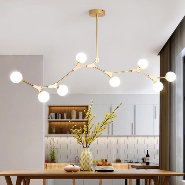 Suspended from the ceiling, a pendant light directs its light down, typically over a table or kitchen island. A pendant can enhance the decorative style of a room. Pendants can provide ambient or task lighting.Chandelier Lights