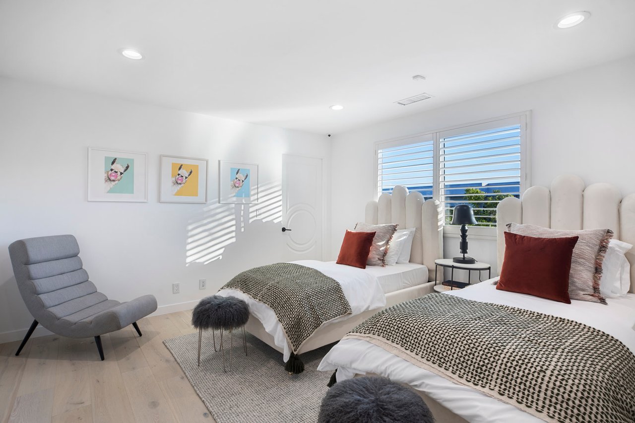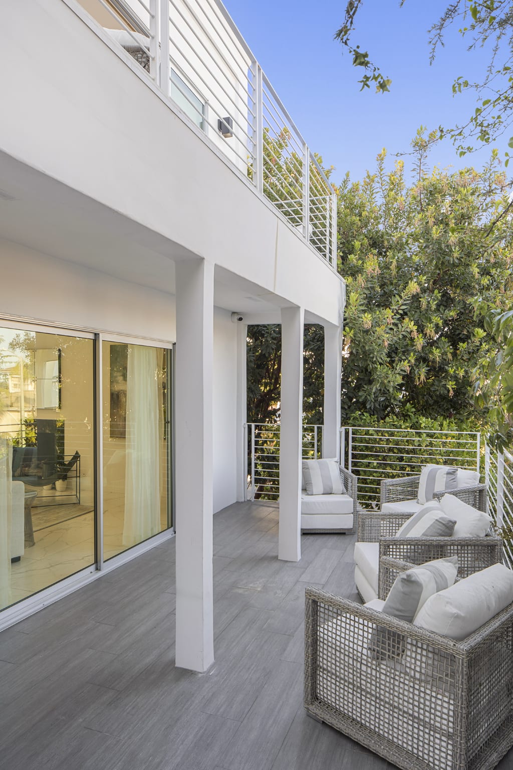 Glamorous contemporary home nestled in the hills of Mt Olympus flaunts 5 BD + 4 BA, pool, spa, & enviable balcony views. This residence is gated w the entry set back far from the road offering major privacy & security. The front door opens to a soaring foyer which finely presents the stairway, chic dining room, & sunken living room w fireplace. The 1st floor is embellished w porcelain/marble floors & the 2nd w white oak. Hidden from immediate view is the chef's kitchen, loaded w a gas Wolf cooktop, SubZero Fridge w glass door, Bauformat cabinetry, & access to family room w fireplace. Sliding glass doors lead to the yard w a saltwater pool + spa secured by a custom glass safety gate & mature hedging. One BD/office is on the 1st floor w the other 4 BD on the 2nd - all w walk-in closet. Upstairs are 2 master BD suites, both w ensuite BA, walk-in closets, + private balconies. The balconies boast views of the Hllywd sign + DTLA. The master BA touts a jet tub alongside the master shower w porcelain walls & floors + double vanity. All guest BA's are marble, equipped w Hansgrohe faucets + cast iron tubs. More features: Non-toxic floors, UV light in air ducts, dbl water filter, 9 security cameras, phone/camera system etc. Come view & indulge in the uniqueness of the Hollywood Hills away from the hustle of the city - quiet & secure. Make your dream a reality.
